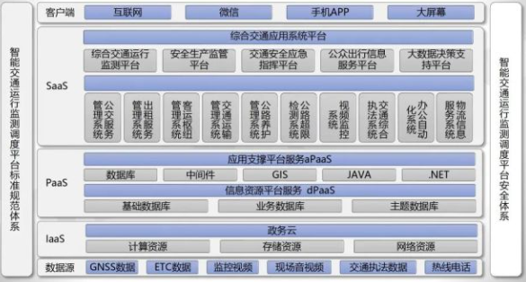 基础设施层:通过政务云平台实现数据云存储,并运用互联网、政务内网、政务外网、控制专网多种网络类型。