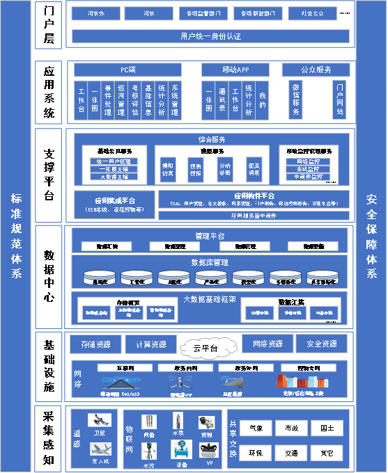 应用系统层:主要建设河长制管理系统、移动APP、微信服务、门户网站等内容。