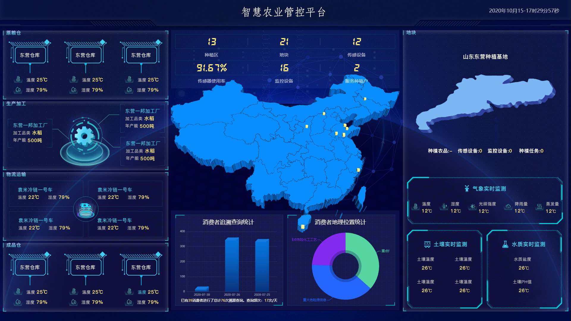 智慧农业是智慧城市建设的重要组成部分,智慧农业的建设为政府提供管控调度依据,旨在解决在农业工作中信息化、自动化的难点,通过新一代信息技术实现蔬菜的可溯源和生长环境的透明化,让人民吃的放心,提高农户的生产效率和产量。