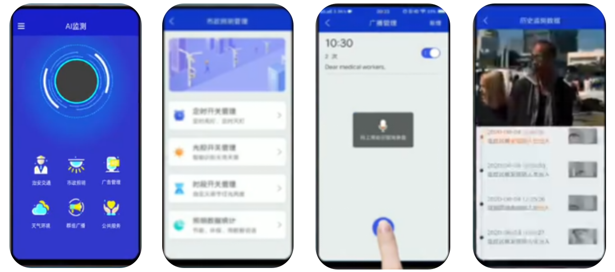 智慧安防:智慧路灯搭载自主研发的高清AI摄像头,拥有终端图像数据AI智能算法,能识别多种安防场景,配合终端的紧急求助按钮,震慑不法分子,减少伤害事故发生,加快案发地点信息定位及取证。